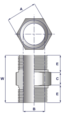 Redukcja 1/2''x3/4'' NPT 304L nakrętno-wkrętna 6-kątna