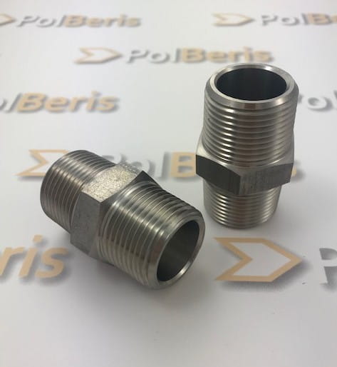 Inna nazwa: Nypel 1/2'' NPT nierdzewny 304L 206bar króciec hex nipple sześciokątny gwint stożkowy gwinty zewnętrzne GZ MM inox kwasoodporny z atestem 3.1 stainless nipple