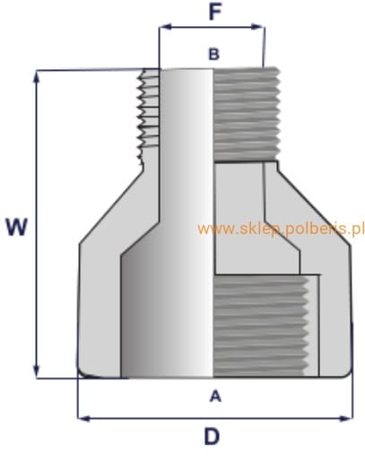 Inna nazwa: Redukcja 1''-1/2'' GW-GZ NPT A105 kl.3000 kształtka złączka wysokociśnieniowa adapter gwint stożkowy NPT do spawania reduction nipple męsko żeńska male female