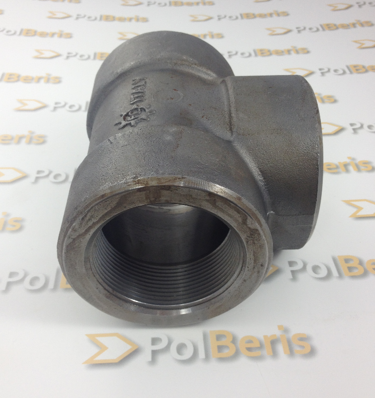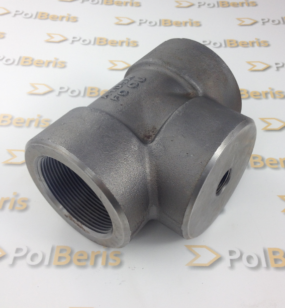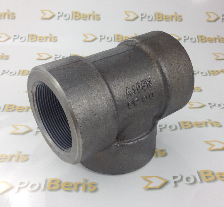 Inna nazwa: Trójnik redukcyjny 1 1/2''x1/2'' BSP kl.3000 A105 gwint europejski DN50xDN32 klasa 3000 A105 stal ciśnieniowa do wysokich temperatur AISI B16.11 P245GH P280GH reduction tee