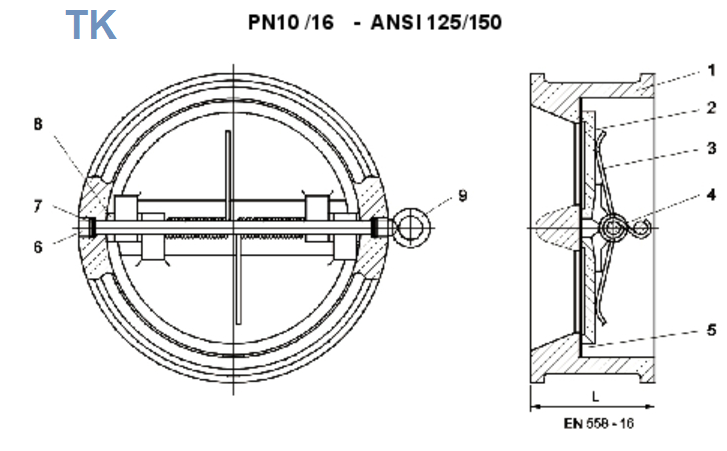 Zawór zwrotny międzykołnierzowy - służy do przepływu cieczy tylko w jednym kierunku. Montowany jest między kołnierzami.